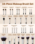 34-Piece Makeup Brush Set, Professional Brushes Kit For Foundation Blending Eyeshadow Concealer Blush - With Soft Bristles, Ergonomic Wood Handle, Travel-Friendly Case Included