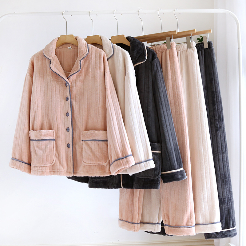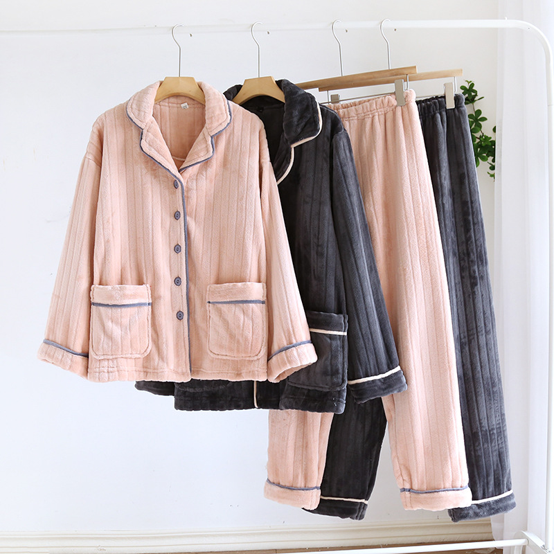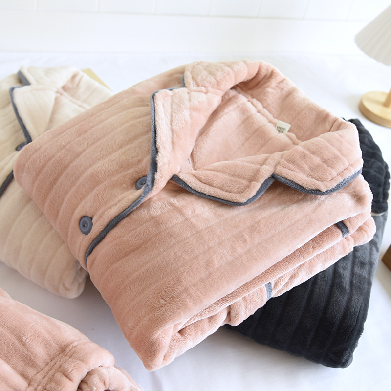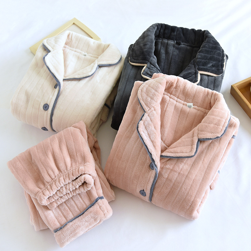 Coral Fleece Thickened, Lined Cozy Pajama Set For Couples