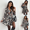 Fashionable Lace-Up Printed Shirt Mini Skirt Dress For Women