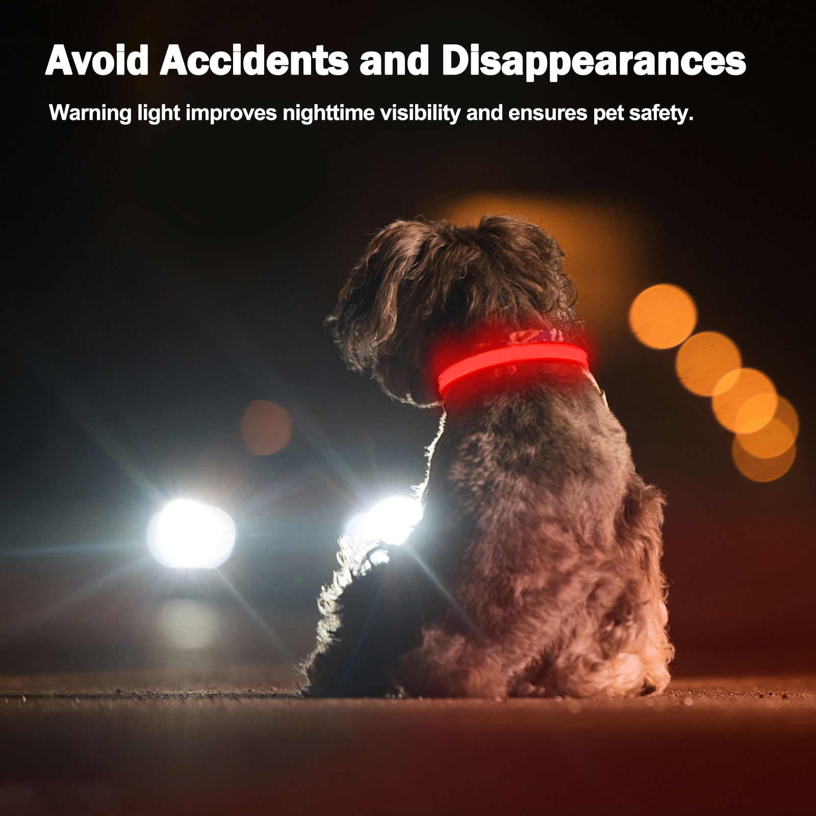 - LIGHT UP DOG COLLAR WITH HIGH VISIBILITY : Our flashing dog collars come with a wide, bright light ring, so you can instantly track the exact location of your four-legged friend in any bush or grassy area. Especially during the 'dark season', the light-up collar ensures that you, vehicles and pedestrians will see your dog well in advance, thus avoiding accidents and disappearances. The light up collar is a necessity for night walks.