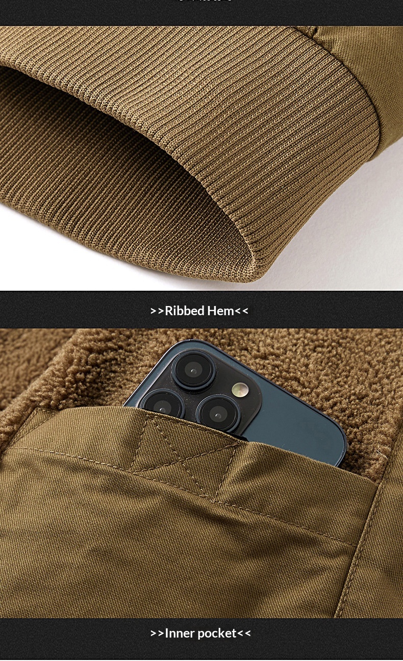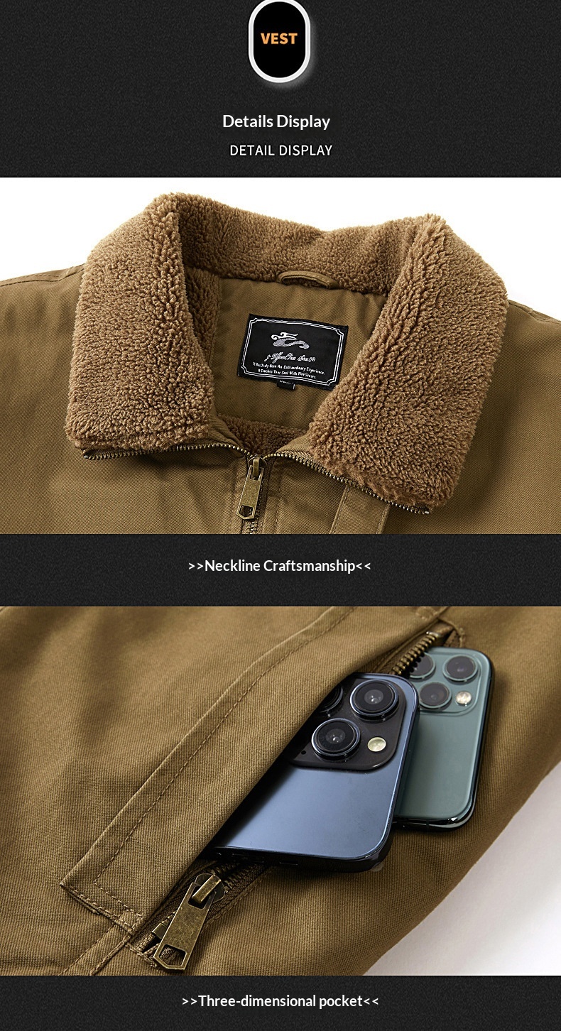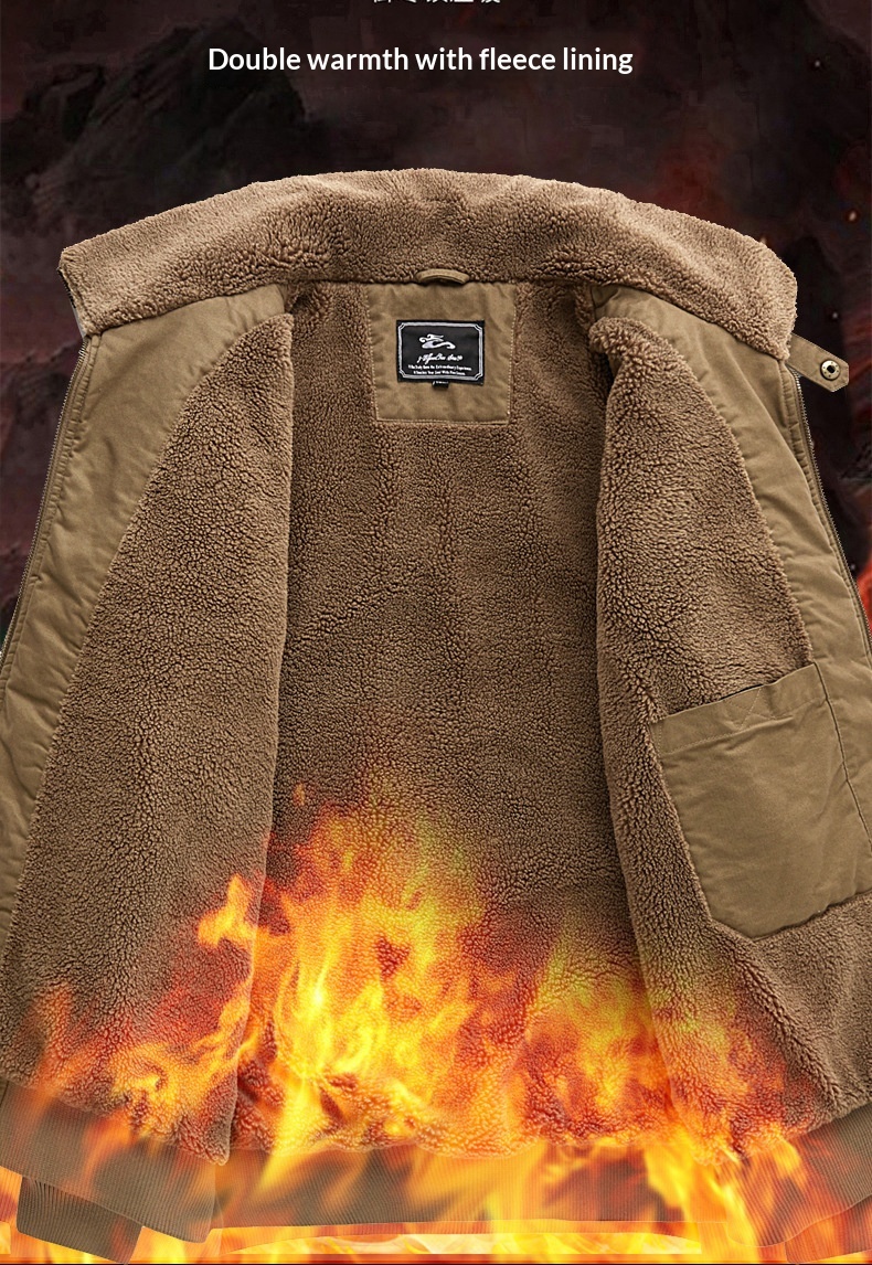 Mens Fleece-lined Loose-fit Plus-size Coat