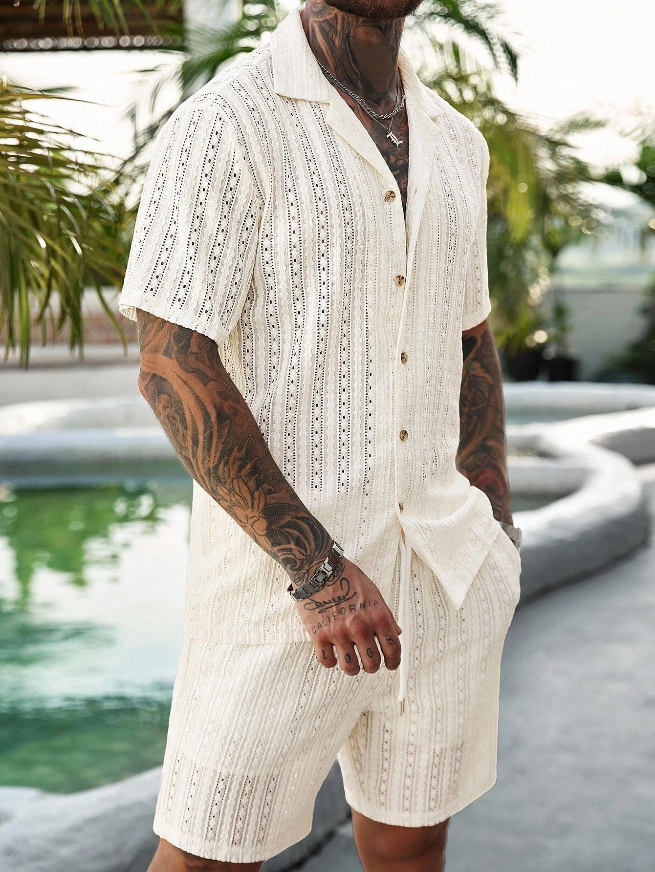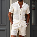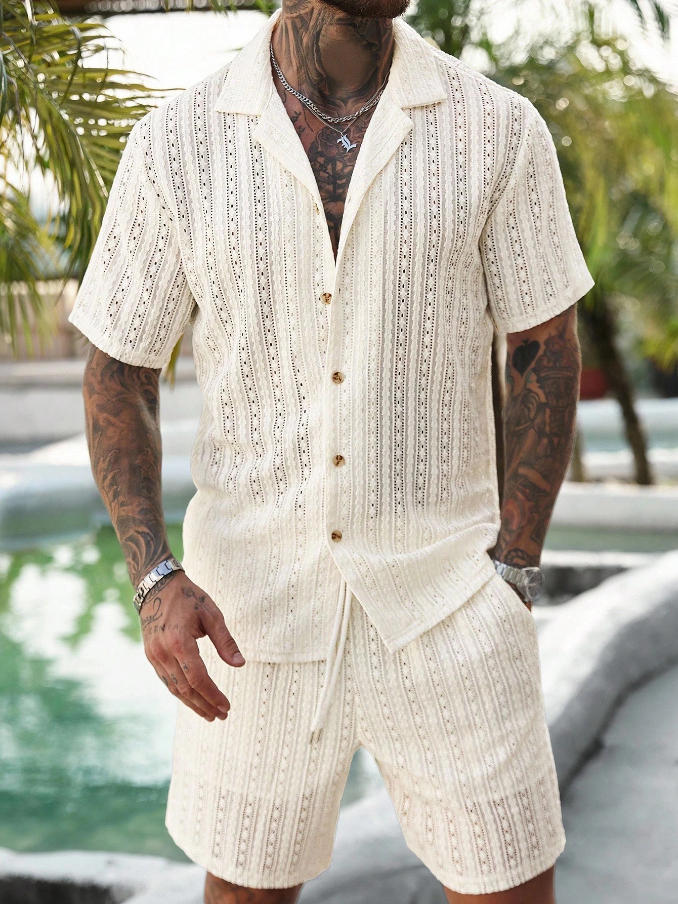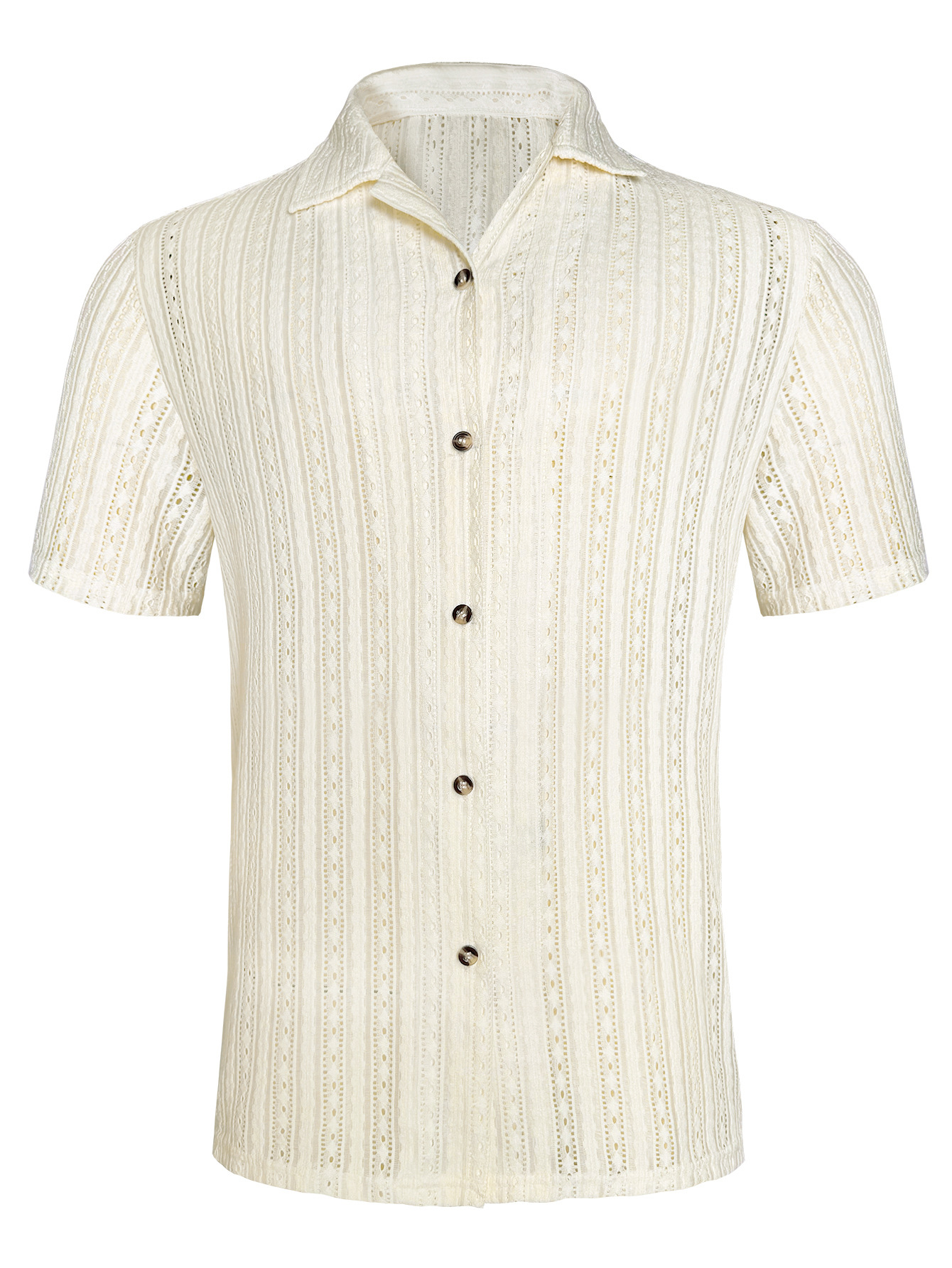 Mens Hollow-Out Breathable Short-Sleeve Shirt And Shorts Set