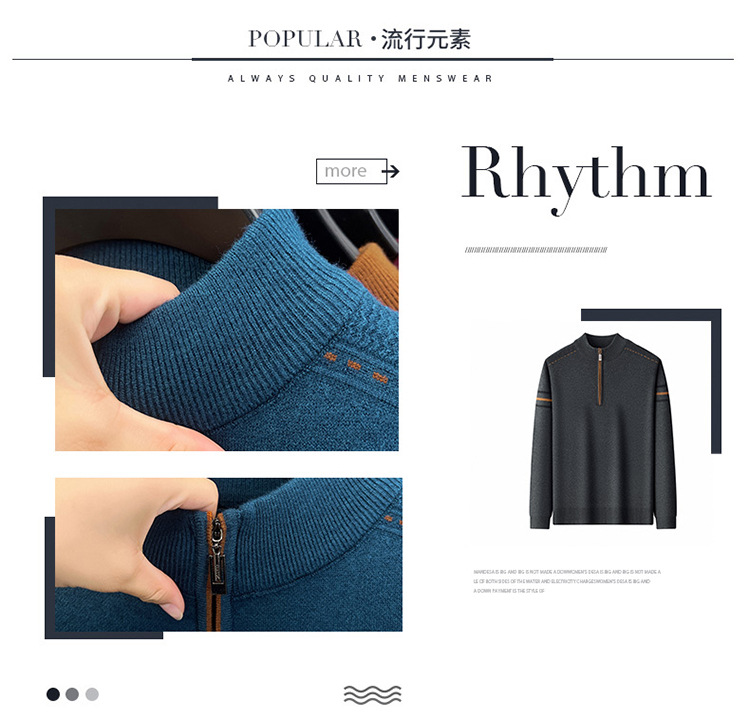 Mens New Mid-Season Winter Casual Thickened Half-Turtleneck Wool Sweater
