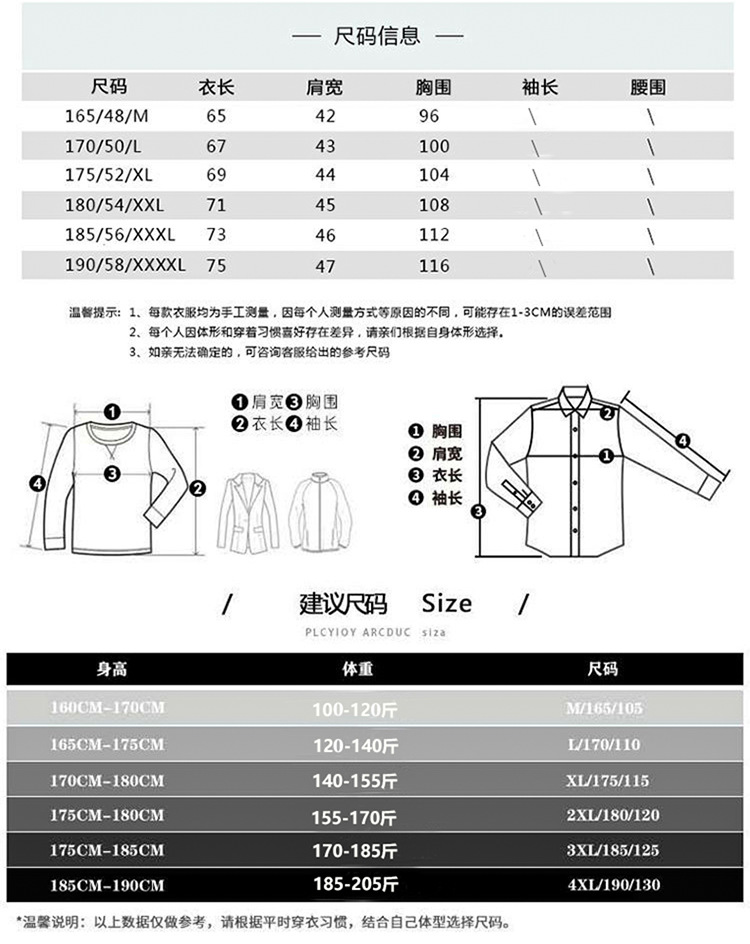 Sizes: 165/M, 170/L, 175/XL, 180/2XL, 185/3XL, 190/4XL