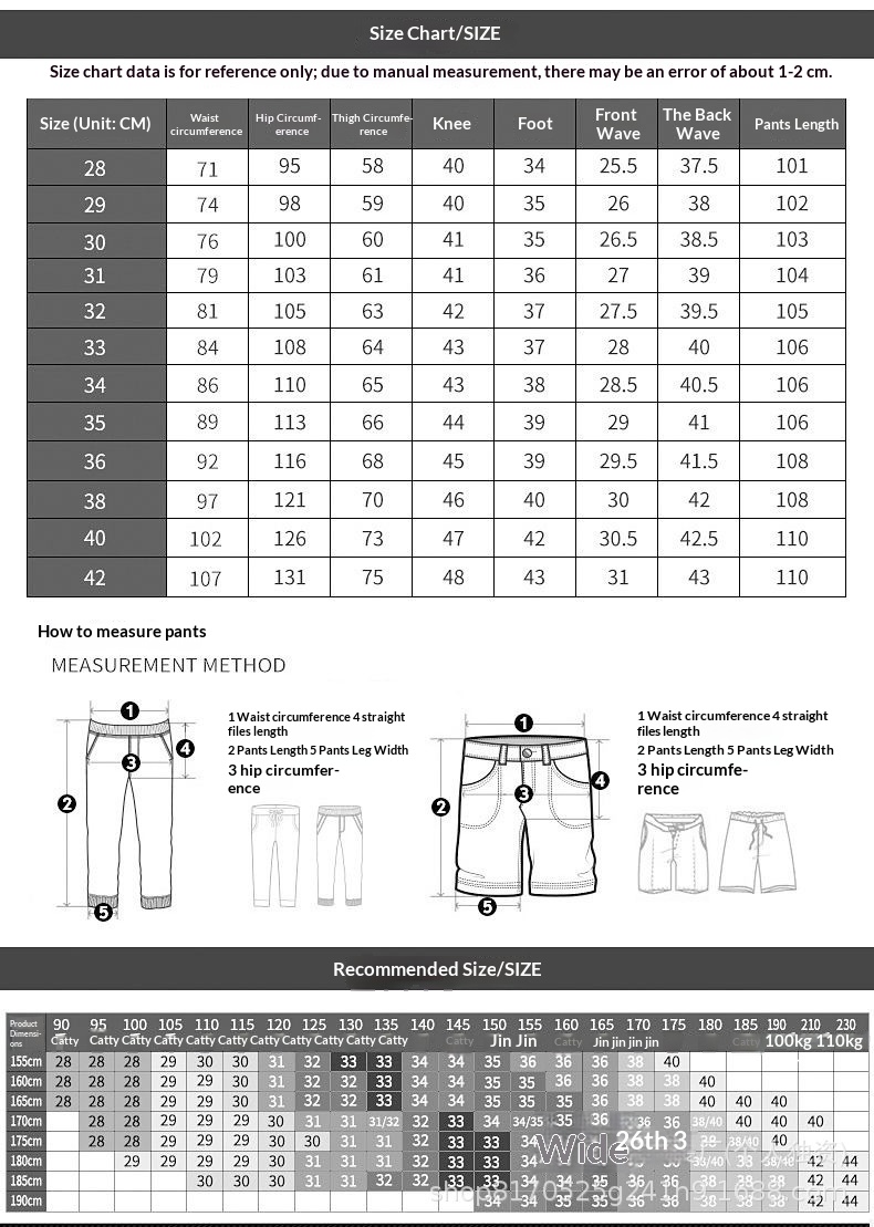 Sizes: Size 28 (waist 2.1 feet, 90–100 lbs), Size 29 (waist 2.2 feet, 100–110 lbs), Size 30 (waist 2.3 feet, 110–120 lbs), Size 31 (waist 2.4 feet, 120–130 lbs), Size 32 (waist 2.5 feet, 130–140 lbs), Size 33 (waist 2.6 feet, 140–150 lbs), Size 34 (waist 2.7 feet, 150–160 lbs), Size 36 (waist 2.8 feet, 160–170 lbs), Size 38 (waist 2.9 feet, 170–180 lbs), Size 40 (waist 3 feet, 180–200 lbs)