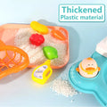 Rich accessories - Baby sink toy with running water come with plastic cups, plastic plates, brushes, game cleaners, plastic knife and fork sets, fishing toys and food toys, as well as detachable drainage racks for filtering water and storing utensils.