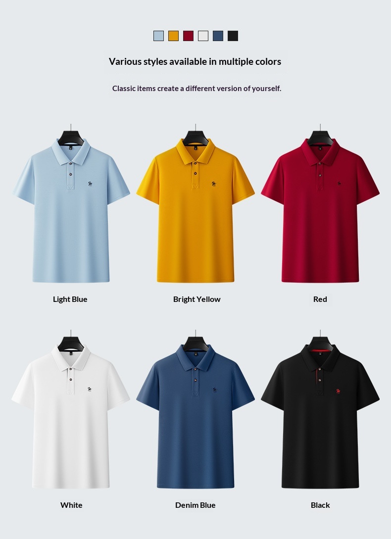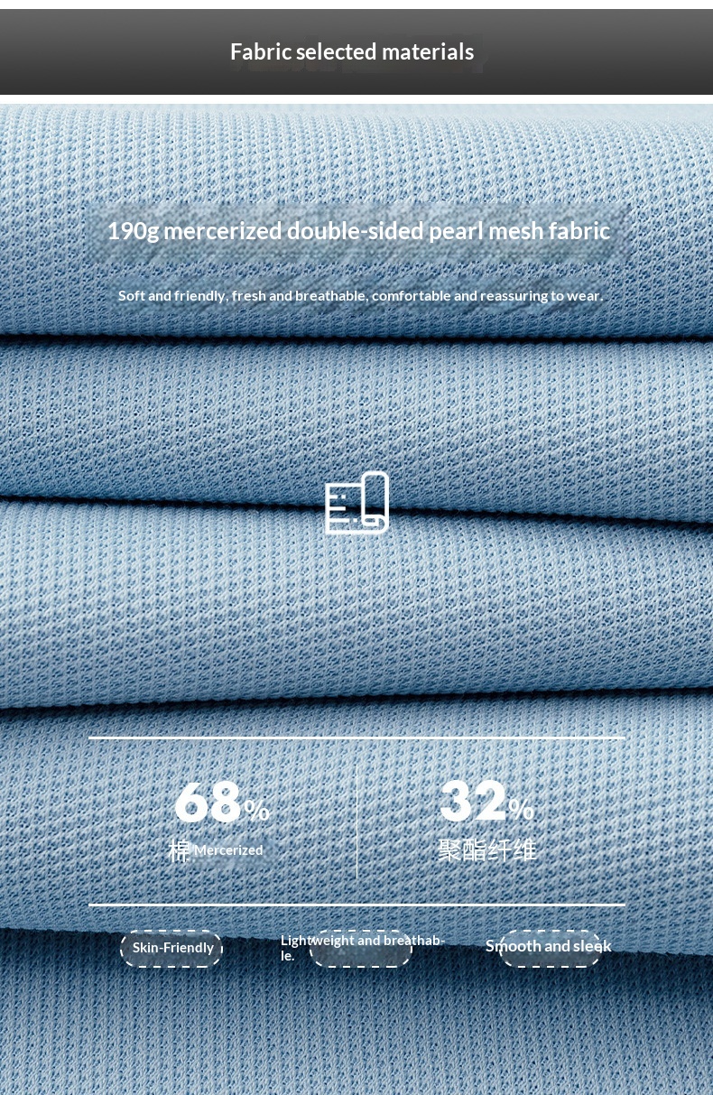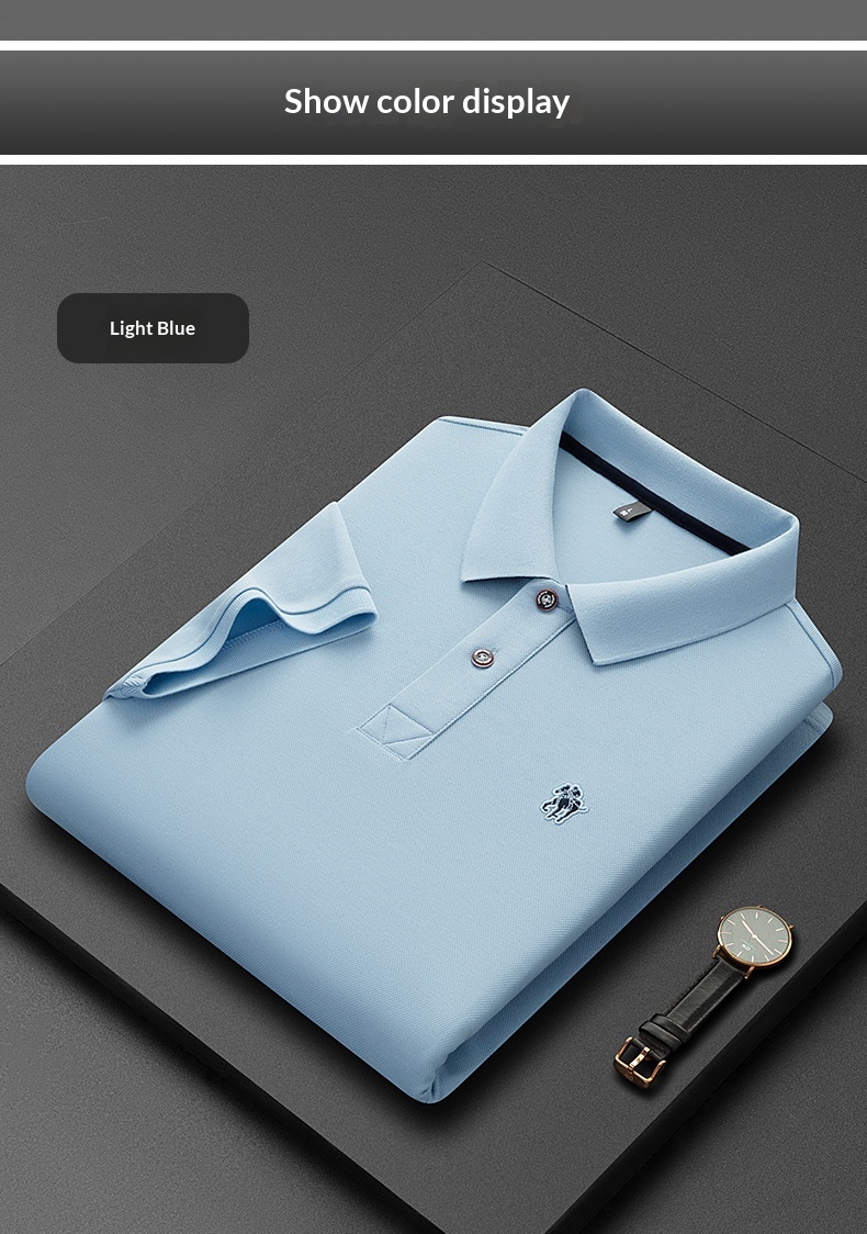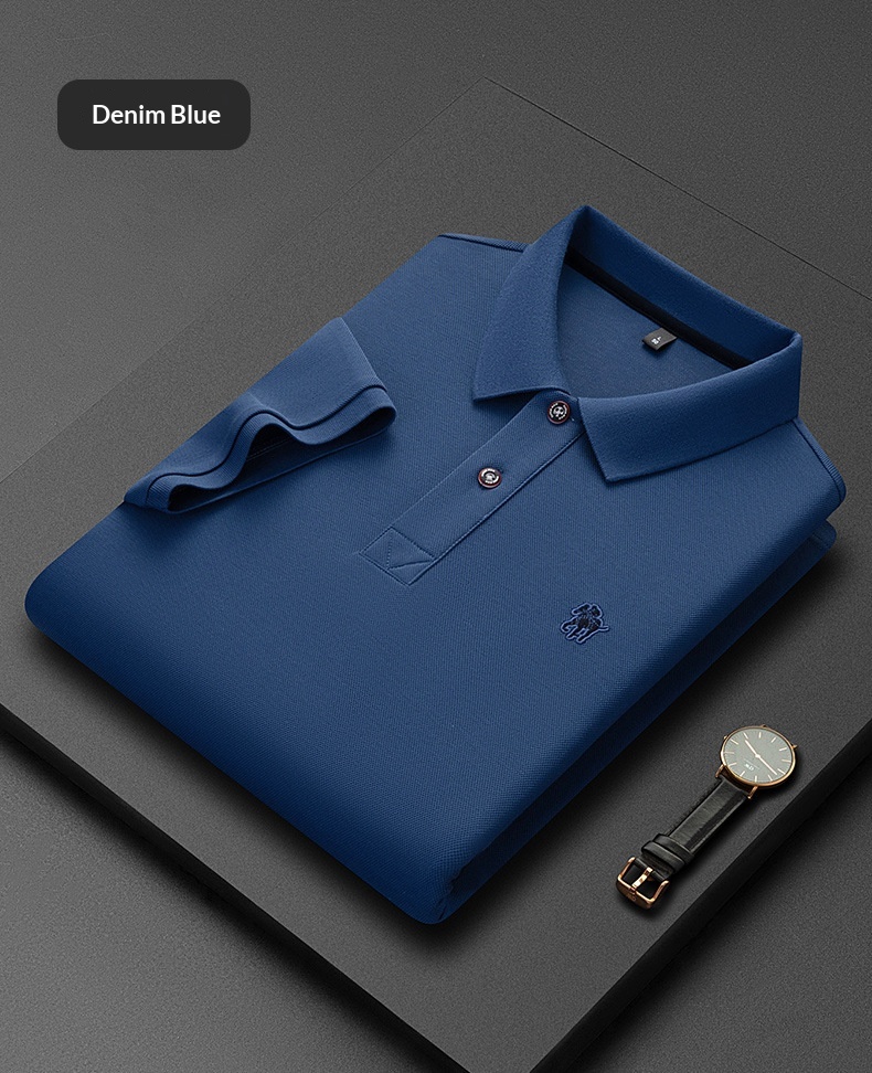 Short Sleeve Lapel Collar Mercerized Double Knit Pique Cotton Mens Top