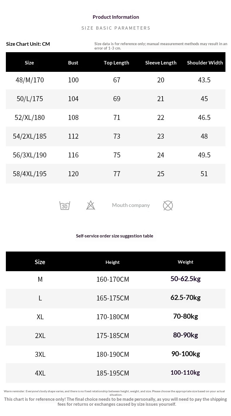 Sizes: M, L, XL, XXL, 3XL, 4XL