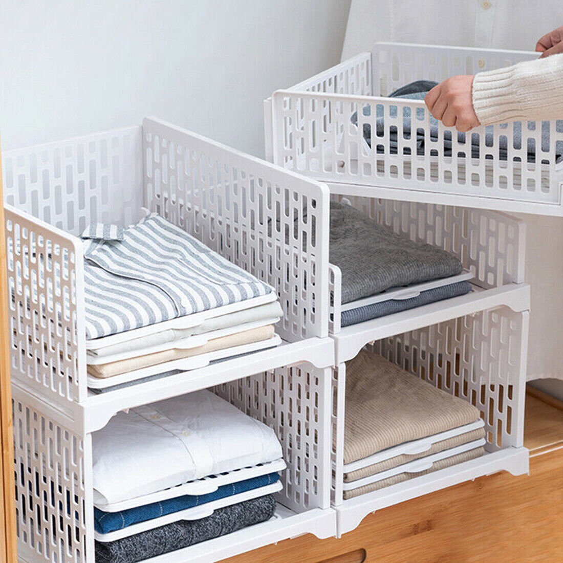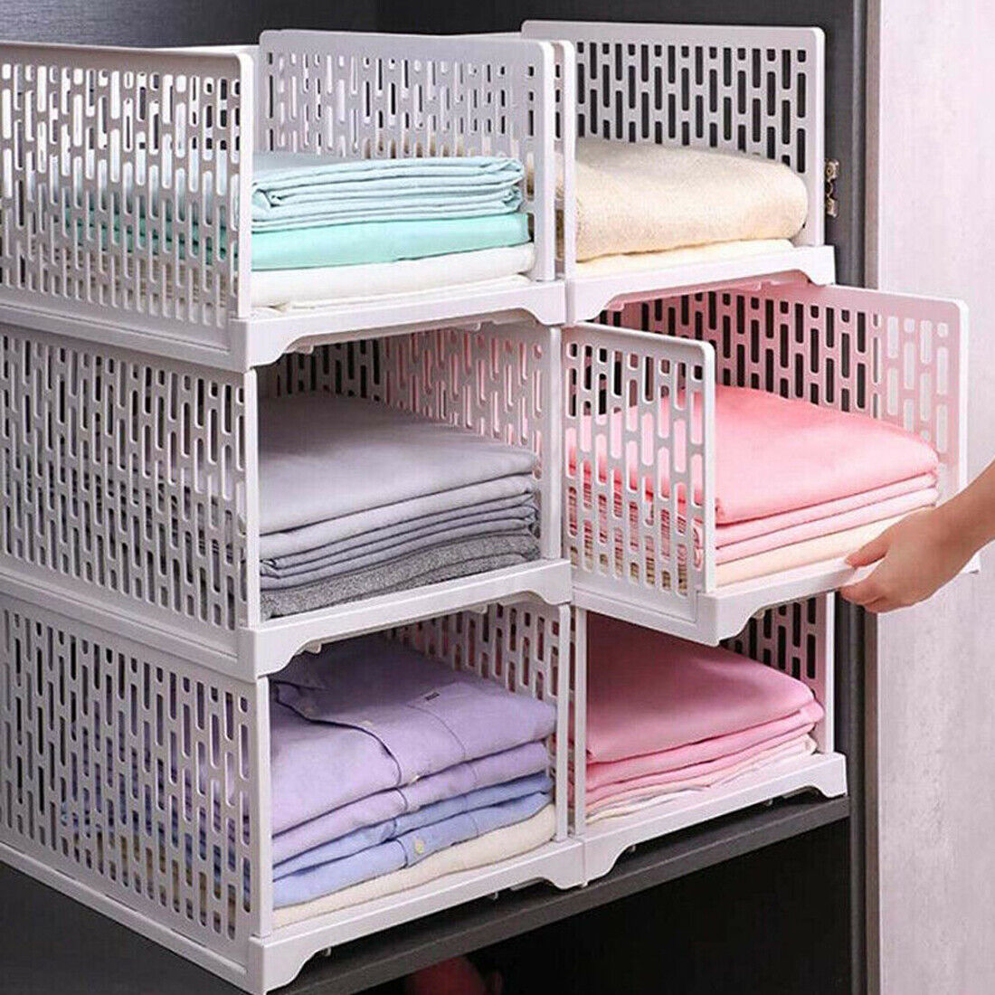 UK New White Wardrobe Drawer Units Organizer Clothes Closet Stackable Storage Boxes Two Size