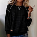 Womens Artistic Vintage Crew-Neck Long-Sleeve Jacquard Plaid Knit Sweater
